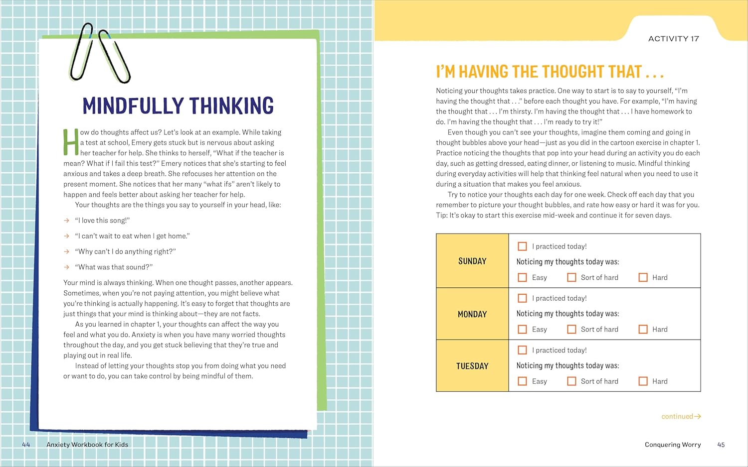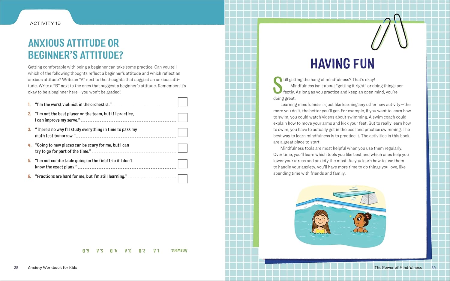 56 hands-on mindfulness activities―With this anxiety activity book, kids can write down their feelings, try easy meditations, explore a growth mindset, and more.